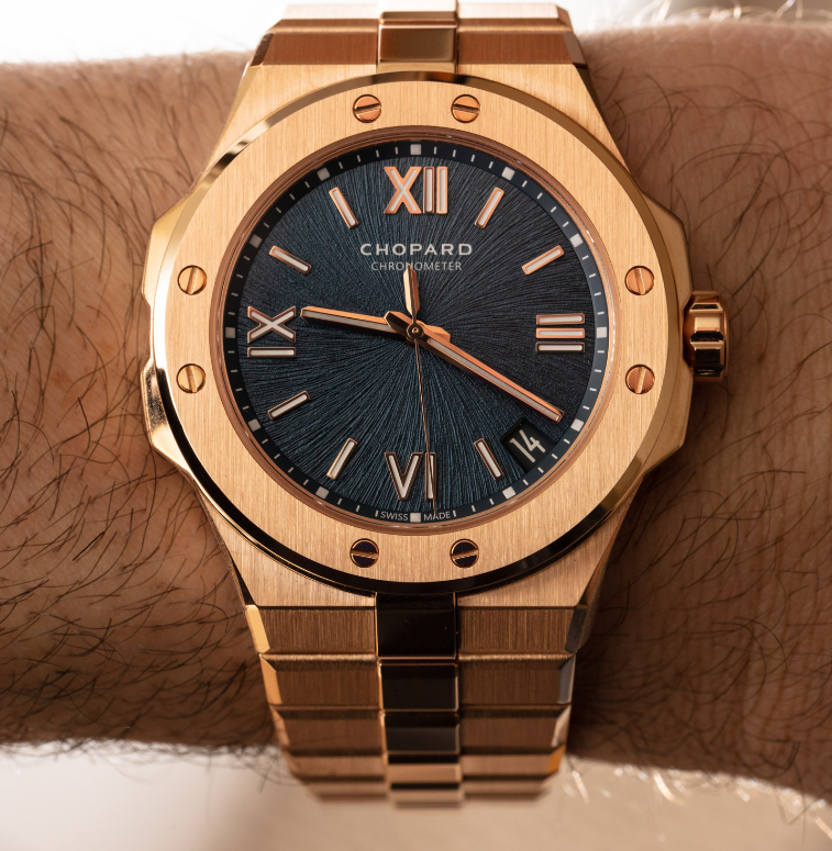 l’acciaio vince quando si tratta di valore e funzionalità, ma quando si indossa l’oro si ha una sensazione viscerale che i metalli non preziosi non possono eguagliare. Lo svizzero Chopard ha impressionato l’industria orologiera e la più ampia comunità di collezionisti con la recente uscita della collezione di orologi Chopard Alpine Eagle (debuttata su aBlogtoWatch qui). Abbiamo parlato prima di Alpine Eagle in acciaio, e poi in seguito sono andato avanti con la versione bicolore in oro rosa 18 carati e acciaio del Chopard Replica Alpine Eagle qui. Oggi esamino la bellissima versione in oro rosa 18k dell’orologio “Alpine Eagle Large”: il riferimento Chopard 295363-5001.