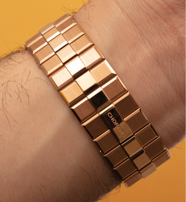 Sia chiaro che Chopard non è estraneo agli orologi d’oro, ma piuttosto la società non ha avuto un orologio da uomo in stile gioiello su un braccialetto integrato fino a poco tempo fa. Un prodotto è solo un orologio da polso d’oro. L’altro è un gioiello da uomo in oro, che indica anche l’ora. C’è un’importante distinzione tra i due.